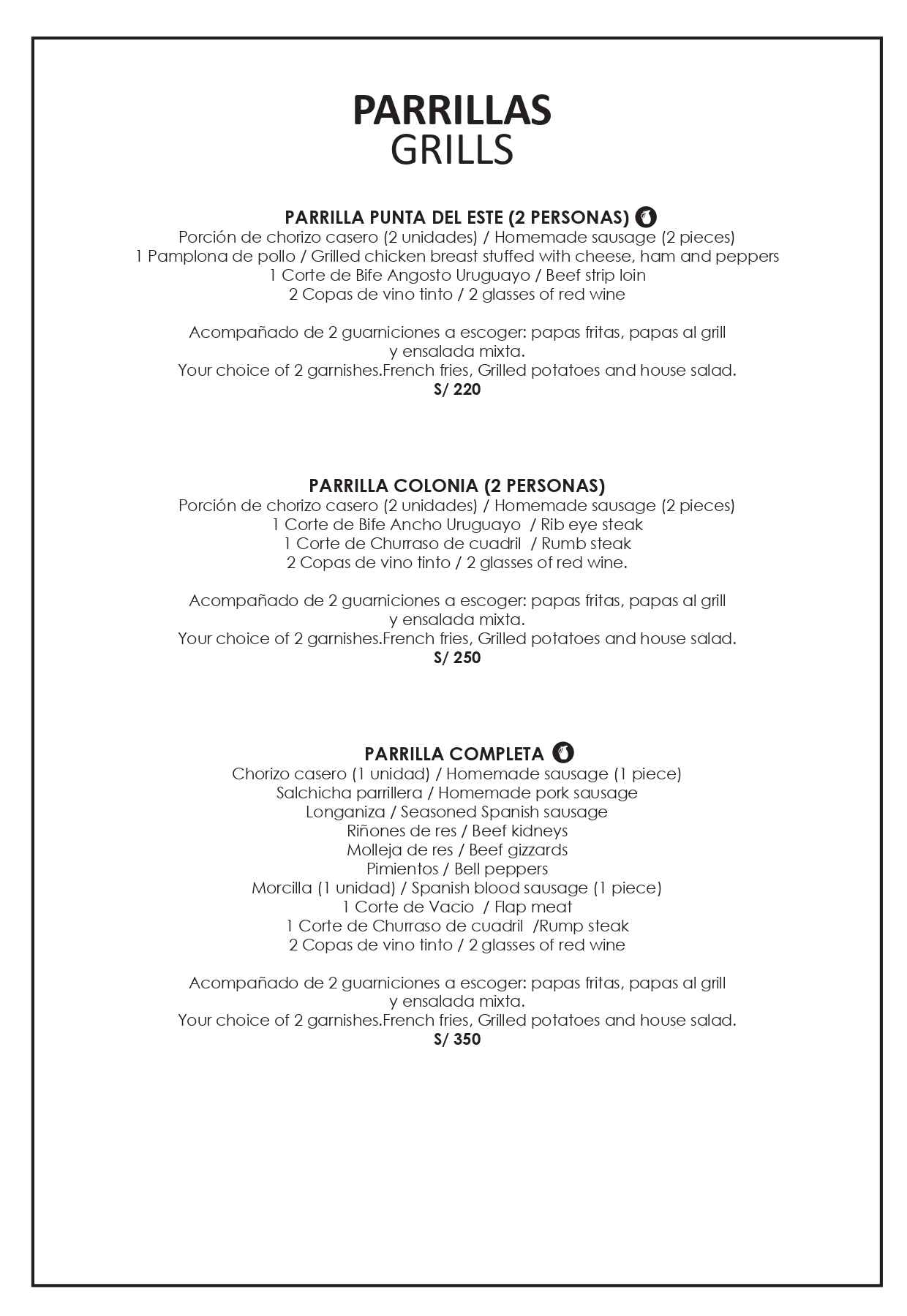 Estamos orgullosos de entregarle un ambiente cálido y acogedor ideal para toda ocasión de un altísimo nivel donde puede disfrutar de la variedad de la comida típica Uruguaya en entradas, carnes y bebidas.